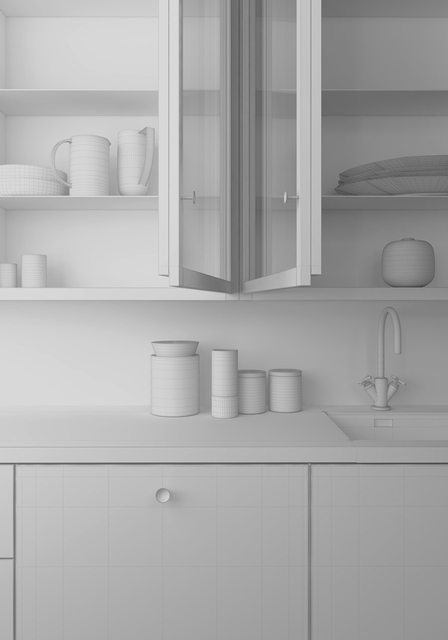 Before you actually apply your materials, commit to material overrides and look at you scene and it’s lighting in its entirety. Doing this is simple, create a 90% white ‘Generic’ material and instance it in the ‘Material Override’ tab in Vray (I’ll show how to do this in later posts). This stage, you or whoever needs to look at the scene can ensure dimensions, the position of elements and the overall lighting is looking as desirable as it can at this stage. Usually called a clay or white card render.